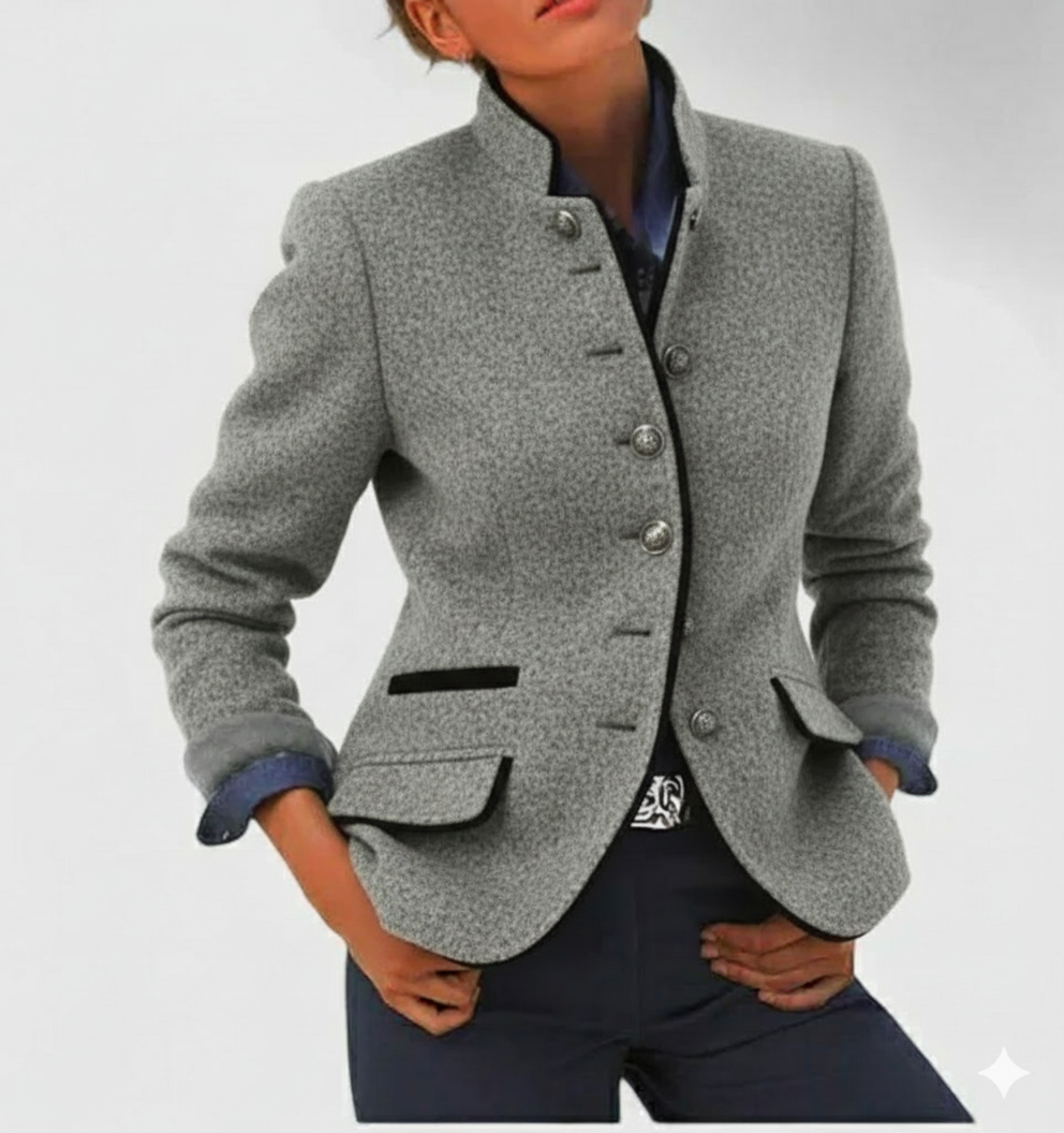 Tento blazer byl speciálně navržen pro ženy, které chtějí kombinovat styl a jemnost. Se svým strukturovaným střihem a klasickým límcem okamžitě dodává chic a profesionální vzhled vašim outfitům, zároveň zůstává pohodlný pro každodenní nošení.