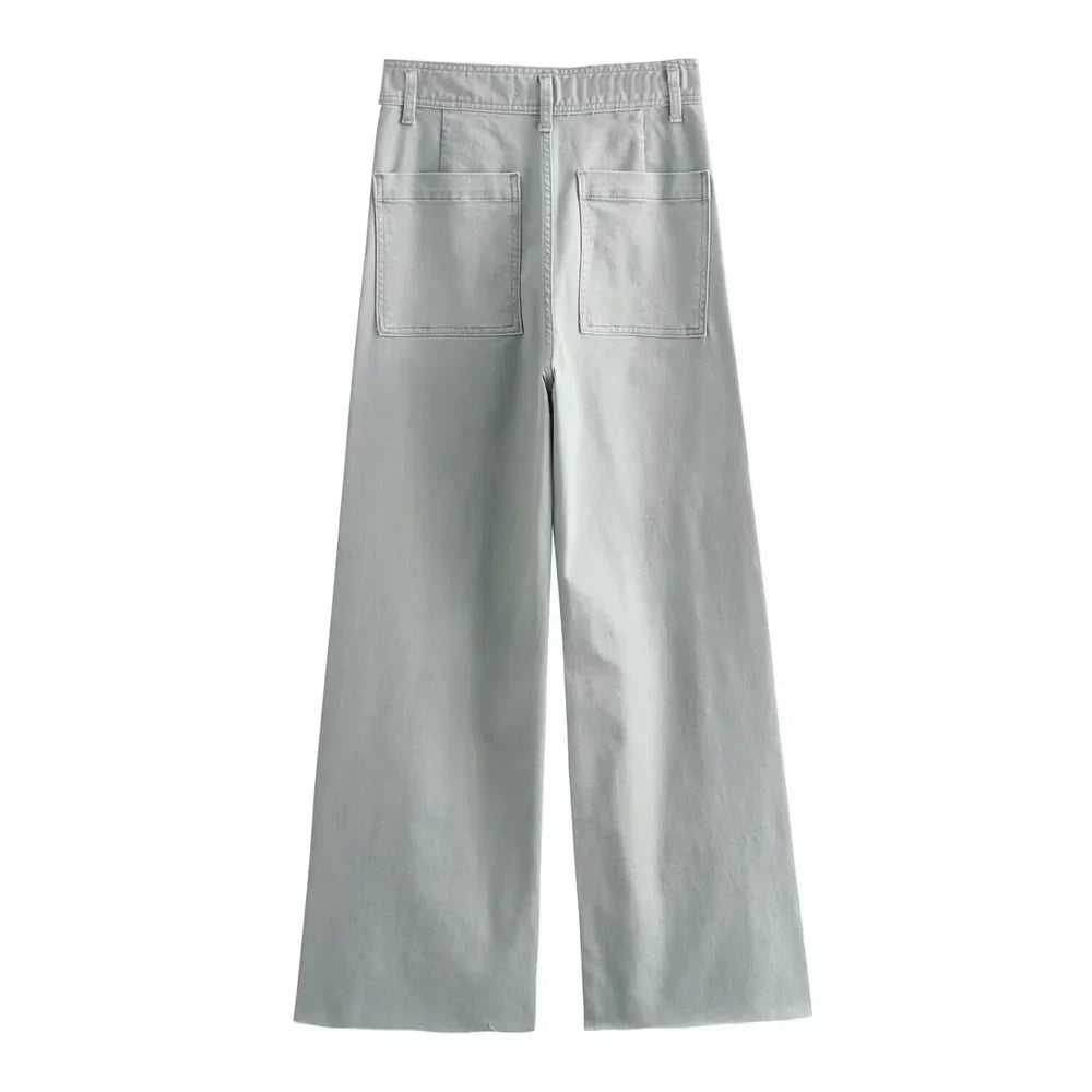 Přidejte do svého šatníku svěží dotek s těmito širokými pastelovými džíny vysokého pasu, navrženými tak, aby přinášely pohodlí a sofistikovanost do vašich každodenních outfitů. Vysoký pas a široký střih lichotí všem typům postavy, zatímco nabízejí maximální pohodlí a volnost pohybu. Jemný pastelový odstín dodává jedinečnou a elegantní atmosféru, což dělá z těchto džínů výjimečnou volbu, která zůstává univerzální.