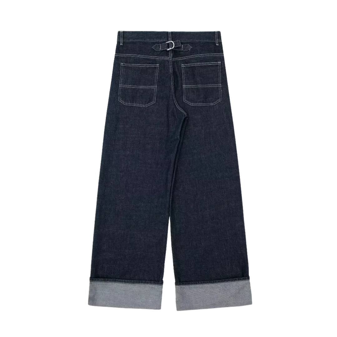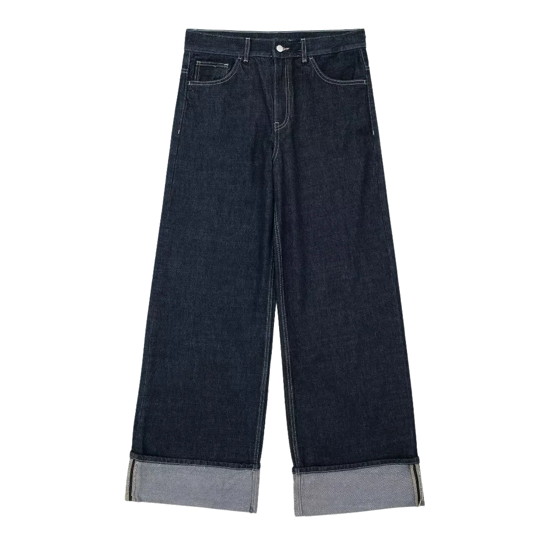 Pozvedněte svůj ležérní šatník s těmito Džínovými kalhotami s vysokým pasem a širokými nohavicemi, dokonalou kombinací pohodlí a moderního stylu. Navrženy s lichotivým vysokým pasem a širokým střihem, tyto džíny nabízejí uvolněný, ale upravený vzhled, který se snadno přetváří z dne na noc. Hluboké indigo dodává klasický nádech, zatímco detail srolovaného lemu mu dodává moderní vzhled.